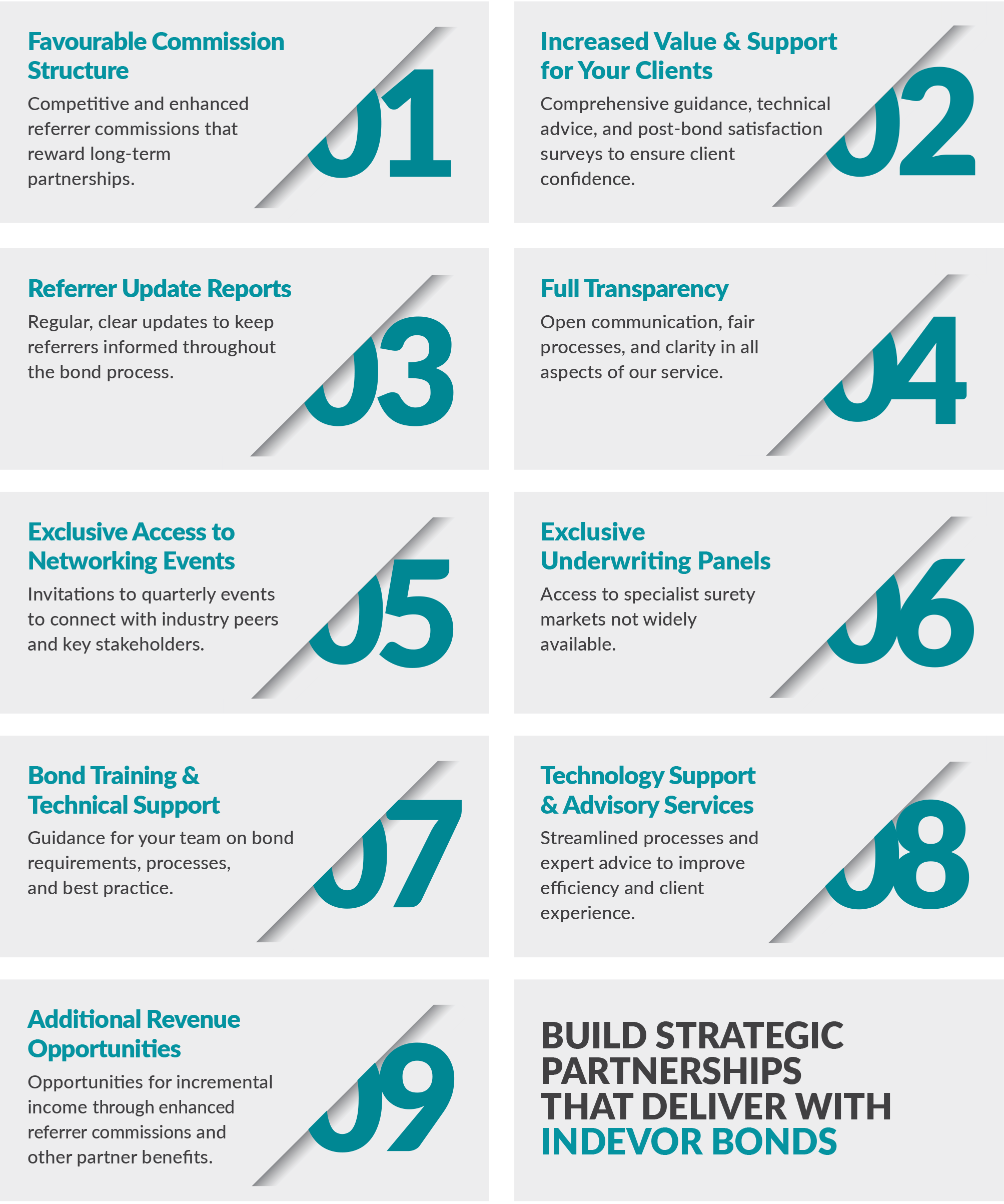 At Indevor Bonds & Guarantees, we take a specialist, relationship-led approach to surety, focused on delivering consistent, high-quality outcomes for our partners.